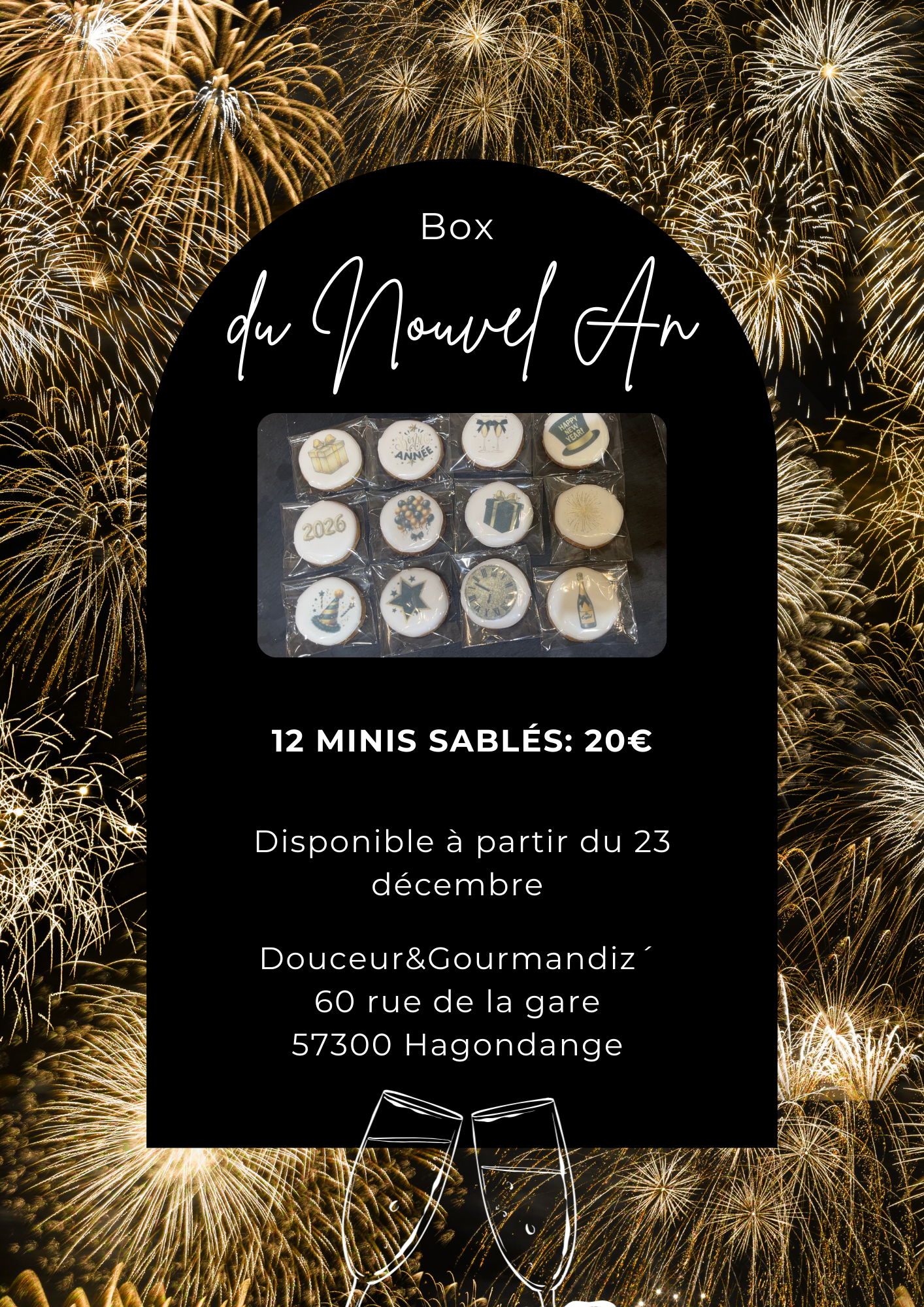 Pour célébrer la nouvelle année avec élégance et gourmandise, Douceur&Gourmandiz’ vous propose sa Box du Nouvel An, composée de mini sablés décorés, soigneusement réalisés de façon artisanale.
